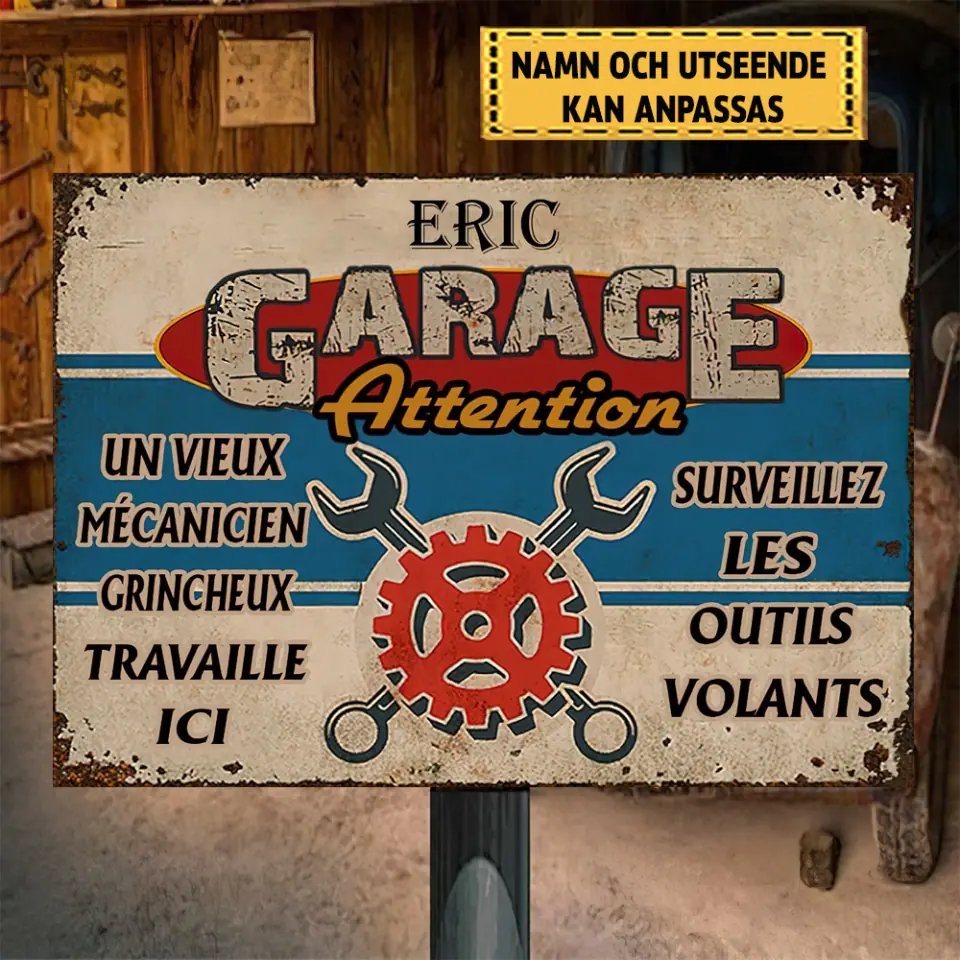 Garage, Se Upp För Flygande Verktyg Personligt Anpassad Metallskylt