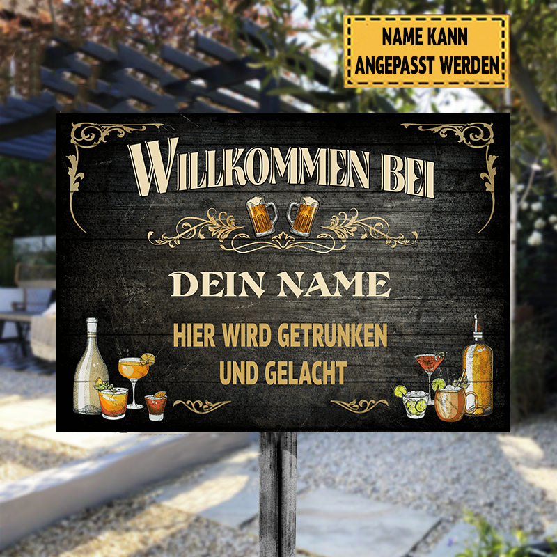 Hier Wird Getrunken Und Gelacht Klassisches Metallschild