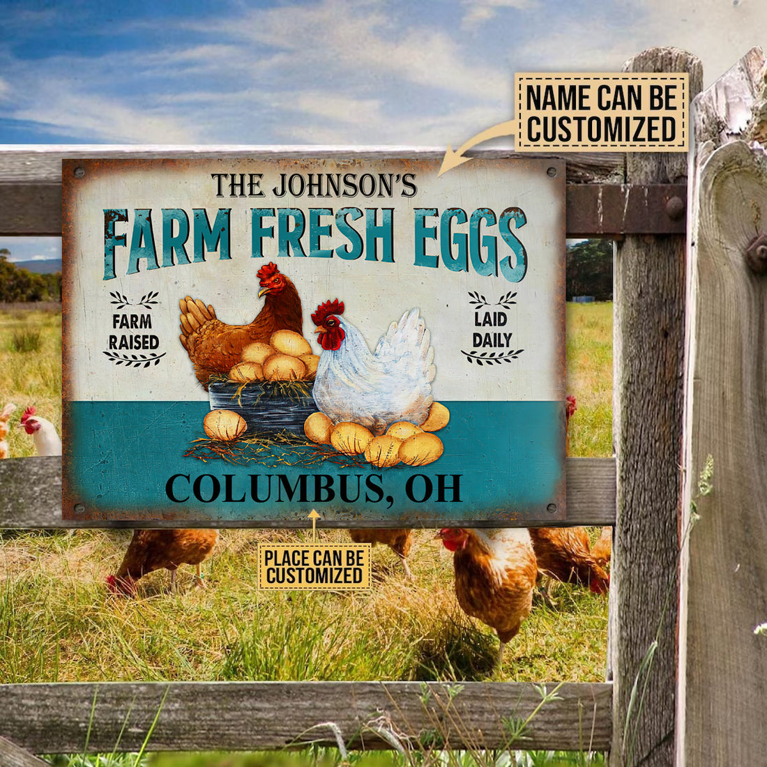 Personalize Chicken Coop Farm Fresh Eggs Farm Raised Laid Daily Classic Metal Signs