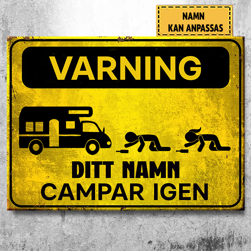 Varning Campar Igen Klassisk metallskylt